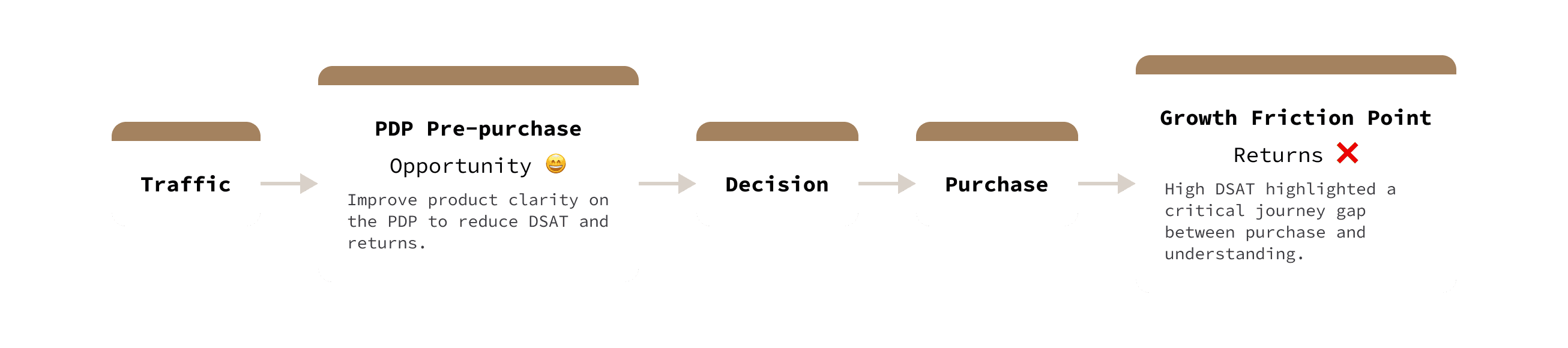 High-intent users reached PDPs but lacked the clarity needed to confidently purchase, resulting in drop-offs, low conversion, high dissatisfaction rates and revenue impact.